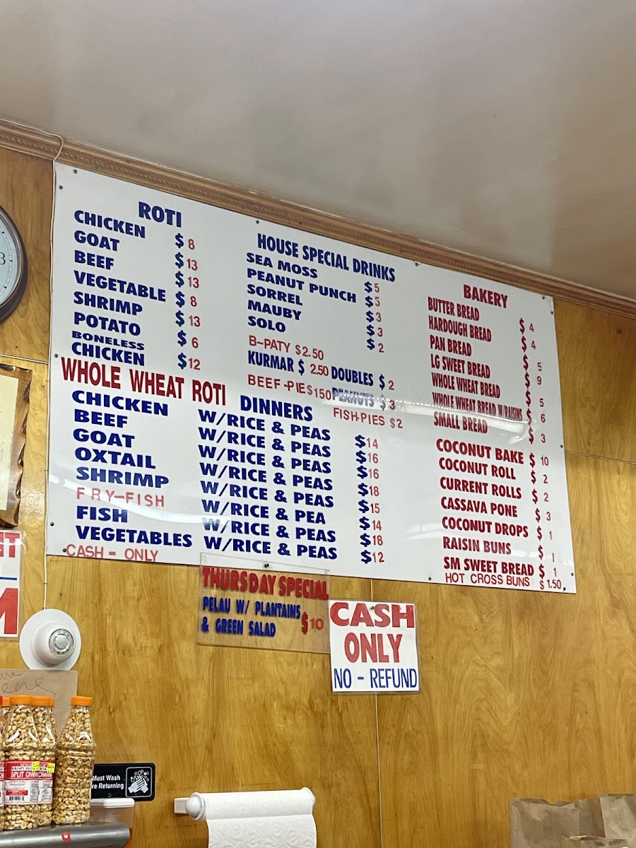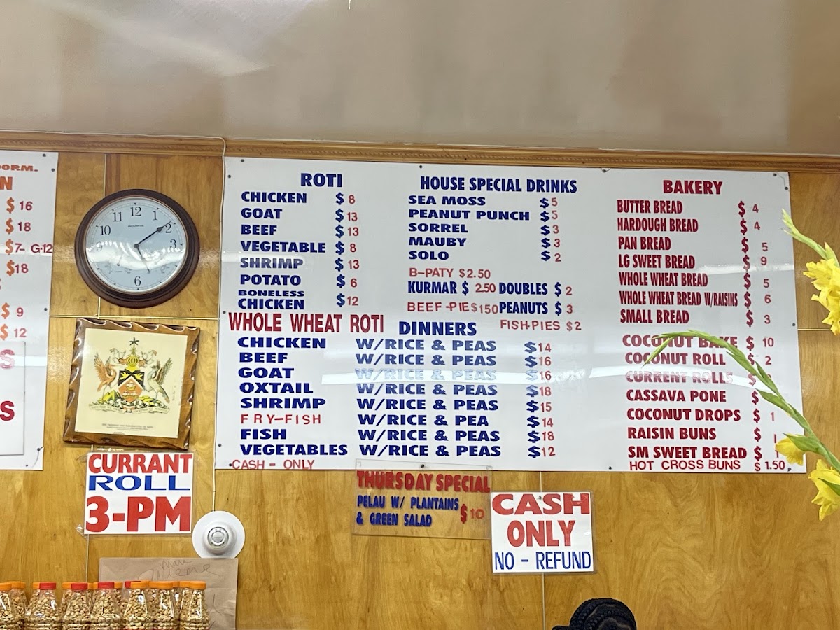 Start your day with classic morning favorites like flaky currant and coconut rolls or indulge in savory bites such as doubles and beef patties, perfect for a light lunch or an anytime snack. The bakery treats, including bread pudding, cassava pone, and various cakes, bring a gentle sweetness that pairs well with a slow moment of calm or a cheerful gathering with friends.
