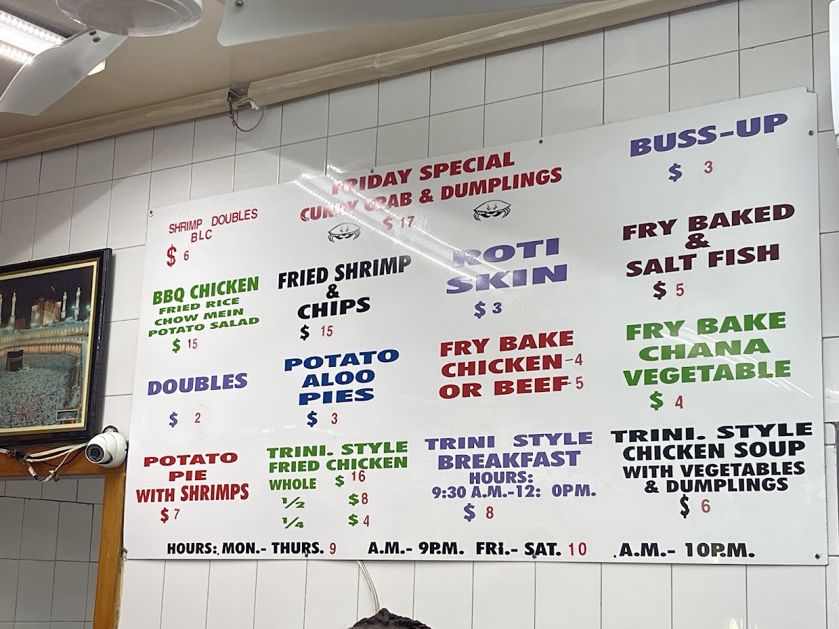Trinidad Golden Place Menu